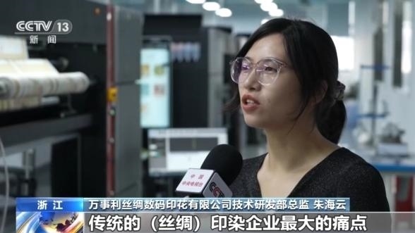 萬事利絲綢數(shù)碼印花有限公司技術(shù)研發(fā)部總監(jiān) 朱海云:傳統(tǒng)的絲綢印染企業(yè)最大的痛點(diǎn)就是庫存壓力,現(xiàn)在我們通過人工智能AI的設(shè)計,再加上我們的一體機(jī)快返的工藝特點(diǎn),它能夠達(dá)到一個先銷后產(chǎn)的經(jīng)營模式,能夠解決我們庫存壓力的痛點(diǎn)。