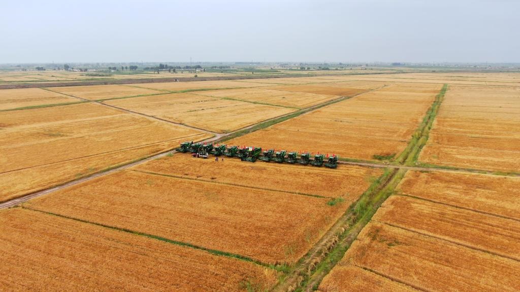 ??在金色麥浪涌動的示范創(chuàng)意園內(nèi),10多臺聯(lián)合收割機依次駛?cè)胱鳂I(yè)區(qū)。種糧大戶王義說:“今年我種了1016畝小麥,小麥長勢良好,麥穗大,顆粒比較飽滿,每畝產(chǎn)量預(yù)計超過1000斤?!?/span>