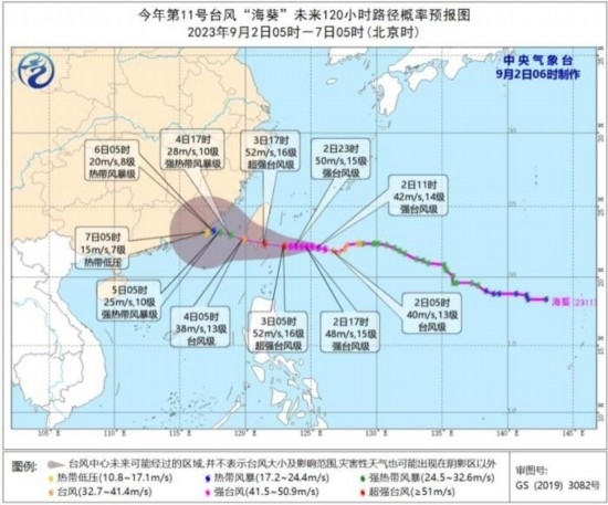 今年第9號臺風“蘇拉”未來60小時路徑概率預報圖