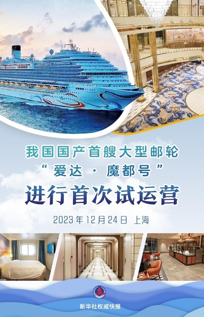 新華社上海12月24日電(記者賈遠琨、張辛欣)12月24日,國產(chǎn)首艘大型郵輪“愛達·魔都號”在上海吳淞口國際郵輪港離港出海,進行首次試運營。