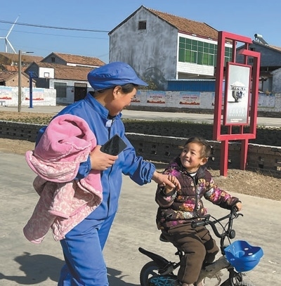 從劉攀登的醬菜廠(chǎng)出來(lái),記者碰上村民張玉霞牽著孩子回家吃午飯。