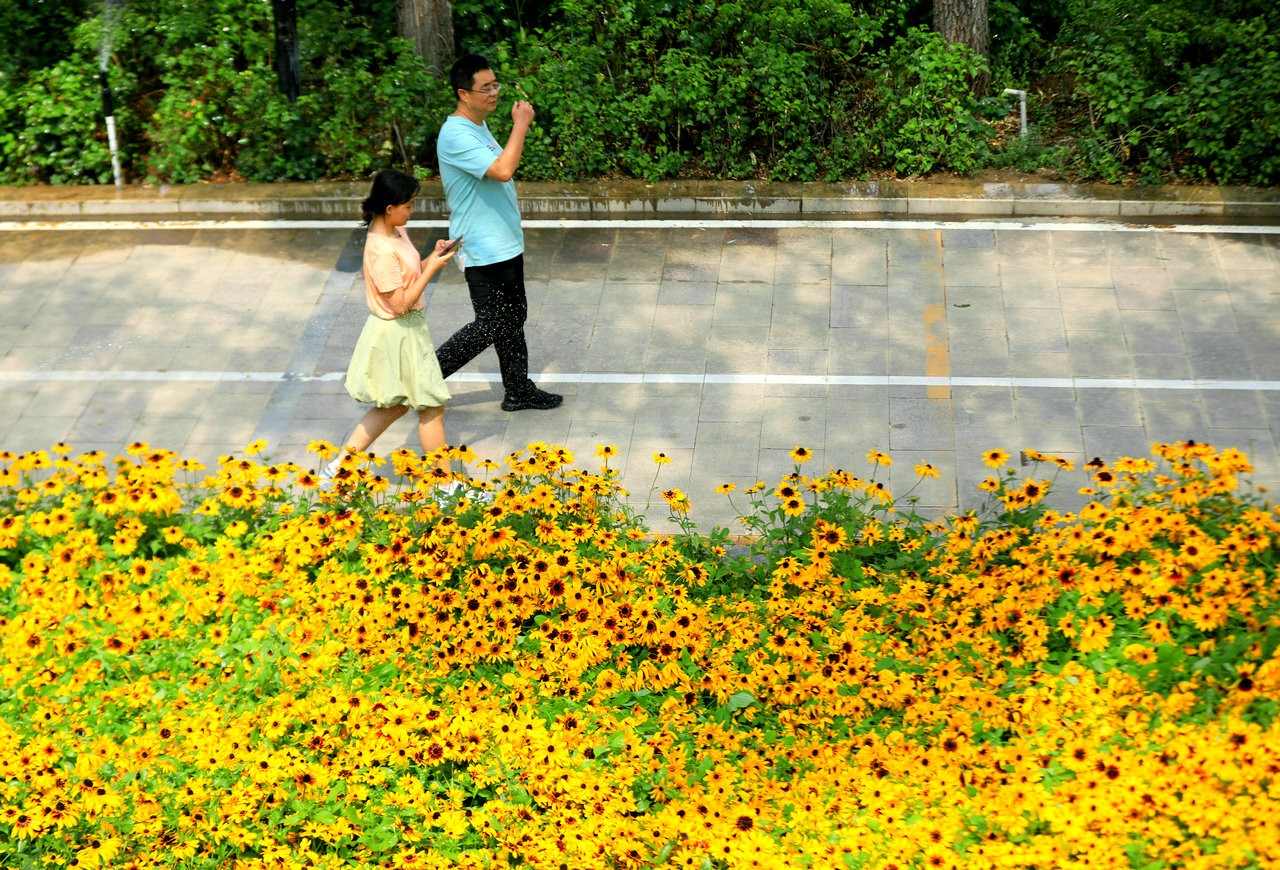 8月4日,市民在呼和浩特萬通路“青城綠道”穿行。