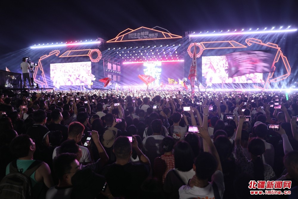從當(dāng)天下午開始,戰(zhàn)旗樂隊(duì)、發(fā)條卡目索、藍(lán)野樂隊(duì)、蘇菲花園、陳碩子、丟火車、麻園詩人、趙雷、二手玫瑰等輪番登場。一首首歌曲,一幕幕高潮,粉絲們揮舞著旗子和熒光棒,跟著現(xiàn)場的動(dòng)感節(jié)奏,一起歡呼一起歌唱,惱包馨村一片歡騰。