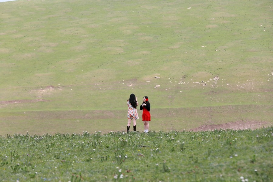 游客在草原上拍照打卡 記者 張楊攝影