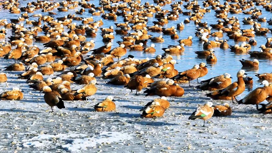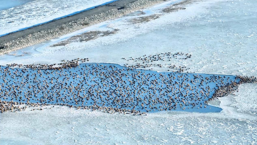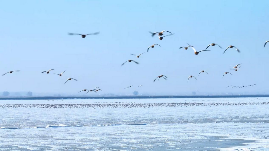隨著天氣轉(zhuǎn)暖,冰雪消融,土默特左旗的海流水庫迎來了大批北歸的候鳥。它們或在水面上嬉戲覓食,或在空中自由翱翔,為初春封凍的水庫增添了一抹靈動(dòng)的色彩。