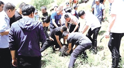 6月6日,甘旗卡鎮(zhèn)森林公安派出所再次接到群眾報(bào)警,稱樹林里又發(fā)現(xiàn)了狗熊,民警到達(dá)現(xiàn)場(chǎng)后依舊未發(fā)現(xiàn)其蹤影。6月11日10時(shí)左右,甘旗卡鎮(zhèn)森林公安派出所再次接到報(bào)警,在甘旗卡工業(yè)園區(qū)北側(cè)發(fā)現(xiàn)狗熊。經(jīng)過前兩次的斗智斗勇,民警們對(duì)這頭只聞其聲、不見其身且又狡猾異常的熊充滿了期待。當(dāng)民警驅(qū)車趕到現(xiàn)場(chǎng)時(shí),終于在樹上發(fā)現(xiàn)了它,是一頭幼年黑熊,屬于國(guó)家二級(jí)保護(hù)動(dòng)物,它正躲在樹上觀看下面的人群。由于黑熊具有很強(qiáng)的攻擊性,為確保周邊村民安全,民警立即對(duì)現(xiàn)場(chǎng)進(jìn)行管控并向上級(jí)匯報(bào)。11時(shí)左右,經(jīng)上級(jí)相關(guān)部門協(xié)調(diào),通遼市園林管理局西拉木倫公園工作人員攜帶麻醉槍、麻醉劑、圍網(wǎng)等設(shè)備到達(dá)現(xiàn)場(chǎng)并制定抓捕方案。12時(shí)左右,“熊孩子”在一番掙扎之后被帶離現(xiàn)場(chǎng),暫時(shí)交由通遼市西拉木倫公園飼養(yǎng)照料。(記者 張巧珍)