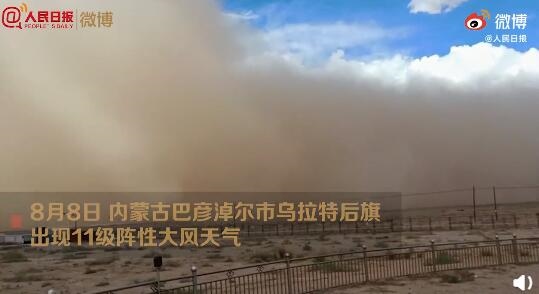 8月8日16時12分至16時23分,內蒙古自治區(qū)巴彥淖爾市烏拉特后旗獲各琦蘇木海力素國家基準氣候站出現(xiàn)11級陣性大風天氣,最大瞬時風速28.5m/s,達到11級,海力素最小能見度192米,出現(xiàn)強沙塵暴天氣。(張棖 王衛(wèi)東)