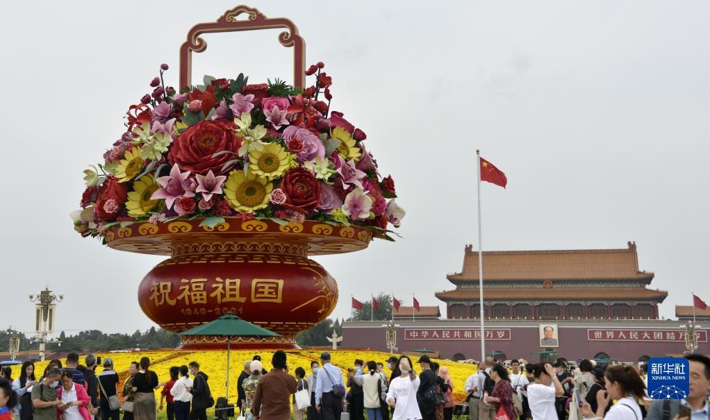 游人在天安門廣場觀賞“祝福祖國”主題花壇(9月27日攝) 新華社記者 李欣 攝