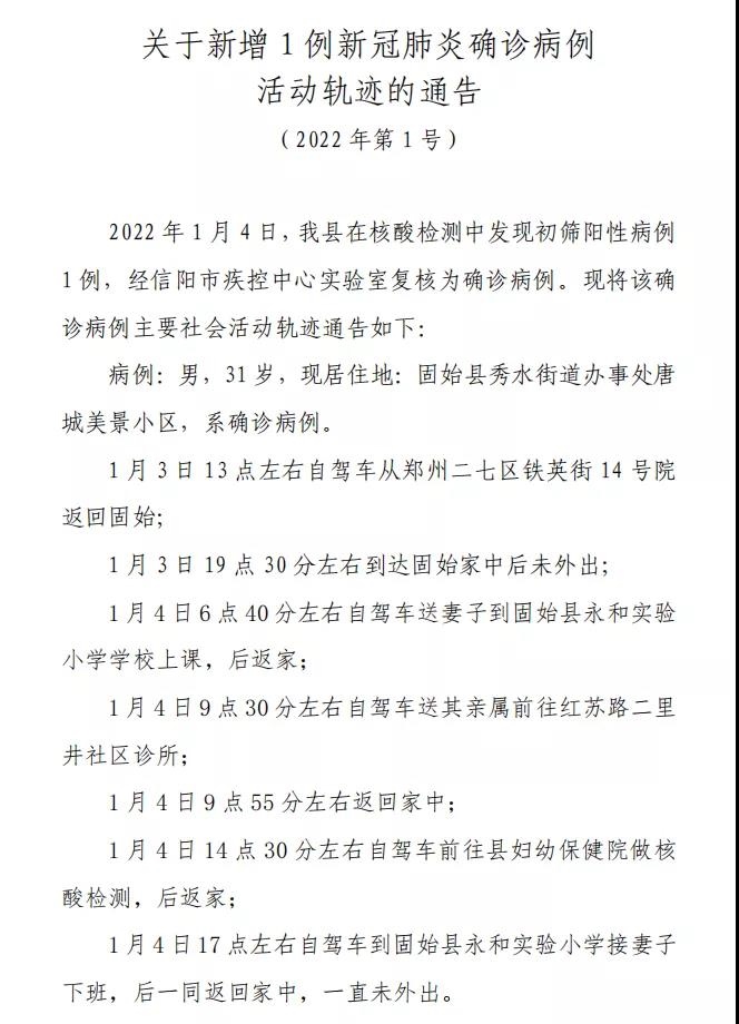 河南固始縣新增1例確診病例 活動軌跡公布