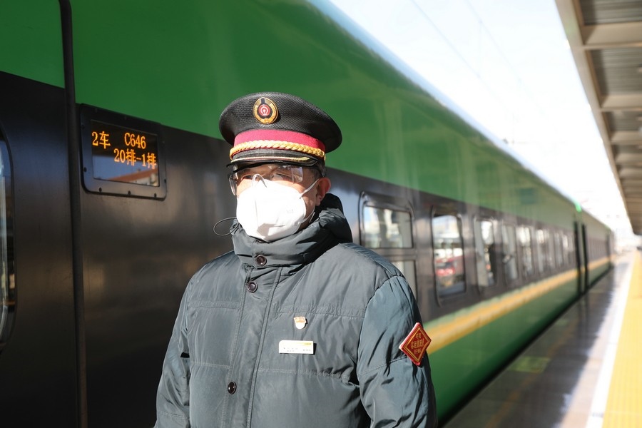 1月17日,圖為春運(yùn)首日,集寧南站客運(yùn)人員接發(fā)綠動(dòng)列車。