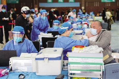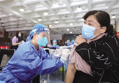 在接種臺前,醫(yī)護(hù)人員分工明確,核驗(yàn)接種人群身份信息、詢問病史和疫苗接種情況,每個(gè)環(huán)節(jié)有條不紊地進(jìn)行著。