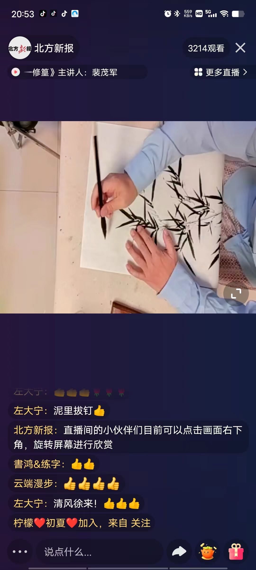 “我們這節(jié)課學(xué)習(xí)的是《明代花鳥(niǎo)畫(huà)一一修篁》……”10月13日晚,呼和浩特市書(shū)畫(huà)院花鳥(niǎo)畫(huà)講師裴茂軍線(xiàn)上課程開(kāi)講,給廣大美術(shù)愛(ài)好者帶來(lái)一節(jié)有趣且實(shí)用的課程,備受網(wǎng)友喜歡。