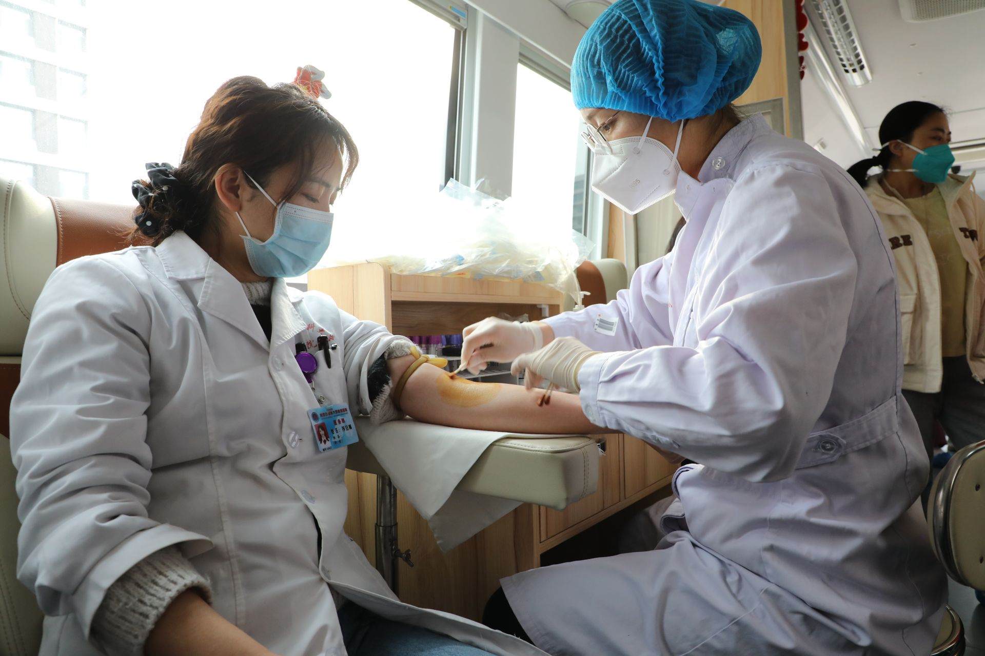 現(xiàn)場,幾名即將為患者做手術的大夫匆匆趕來獻血,因為時間緊張,他們中有的人都沒來得及穿外套,只穿著半袖白大褂就來到室外,在料峭春寒中依次登上獻血車。血管外科的大夫周崇彬當天上午還有兩臺手術要做。獻完血后,他未做停留,一邊用手按壓著針眼,一邊快速走下獻血車。他告訴記者,獻血不只是能夠幫助他人,對自己的身體也是有好處的。醫(yī)院經(jīng)常組織無償獻血,同事們只要有條件都會來獻血,有的人堅持年年獻血。采訪中記者了解到,從2015年截至2022年,內(nèi)蒙古醫(yī)科大學附屬醫(yī)院共有2673人次參與無償獻血,獻血量774700毫升。(文/草原全媒·正北方網(wǎng)記者 王利軍 攝影/見習記者 費捷)