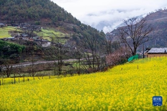 在怒江傈僳族自治州貢山獨(dú)龍族怒族自治縣丙中洛鎮(zhèn)茶臘村拍攝的油菜花(2月23日攝)。