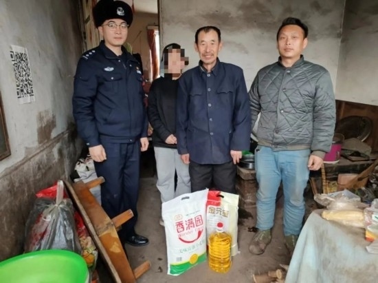 圖為移民管理警察王鐵映為單意超家送慰問(wèn)品。