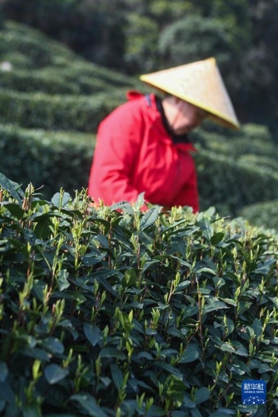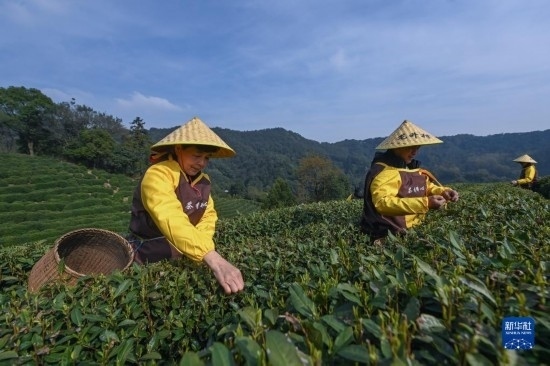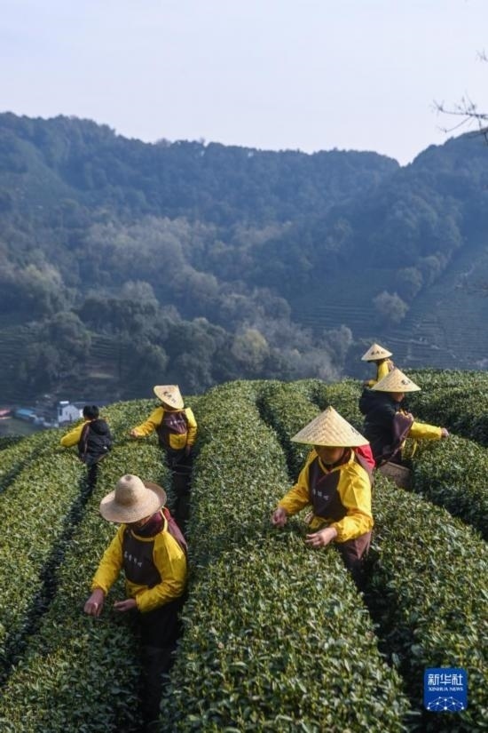 3月13日,梅家塢村的茶農(nóng)在采摘西湖龍井“明前茶”。