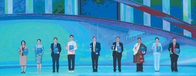 佩戴綬帶,上臺領取榮譽證書,瑯塘鎮(zhèn)龍灣村村民戴均初腰板挺得筆直,笑容掛在臉上。