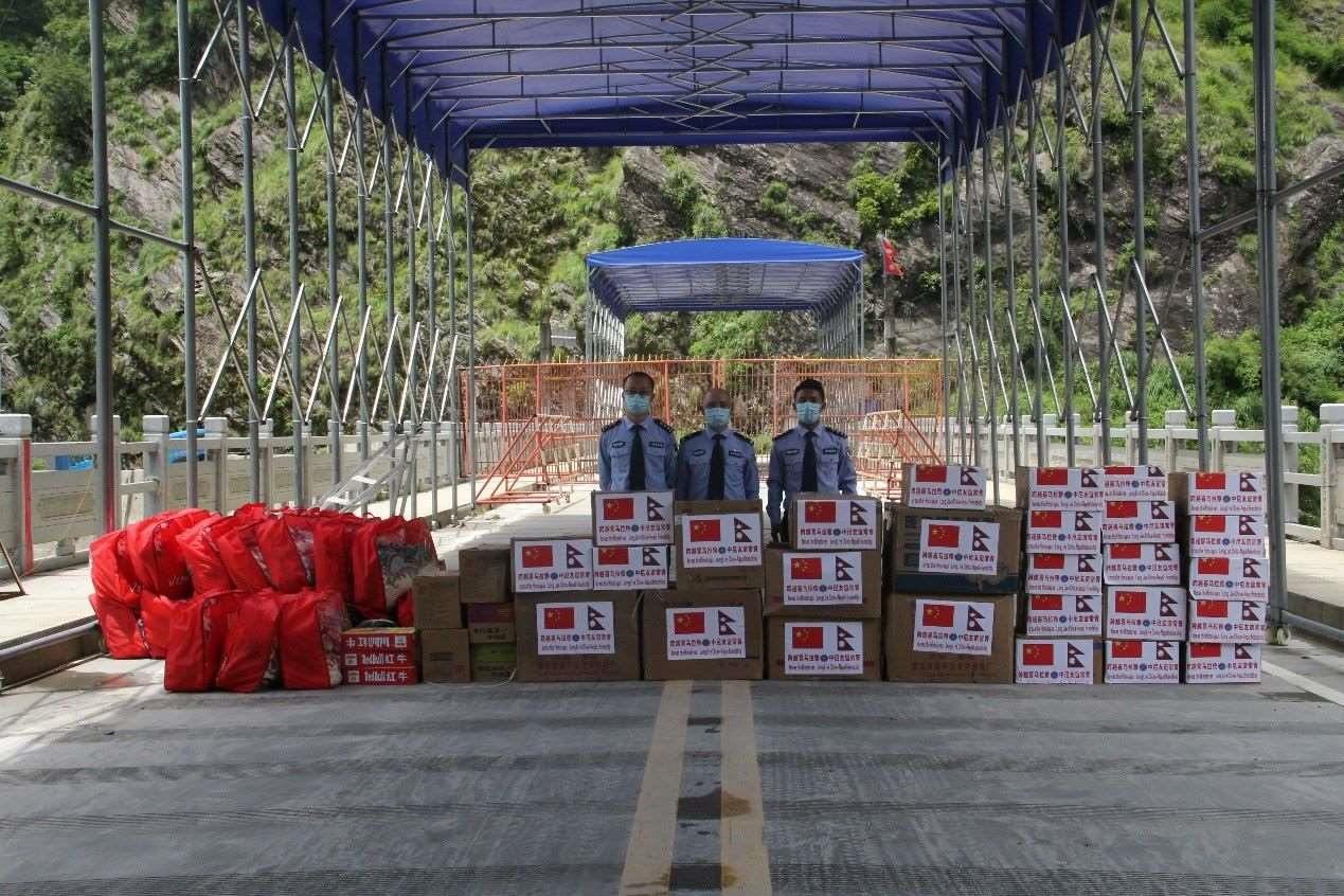 扎西頓珠在樟木口岸組織援尼物資交接。受訪者供圖
