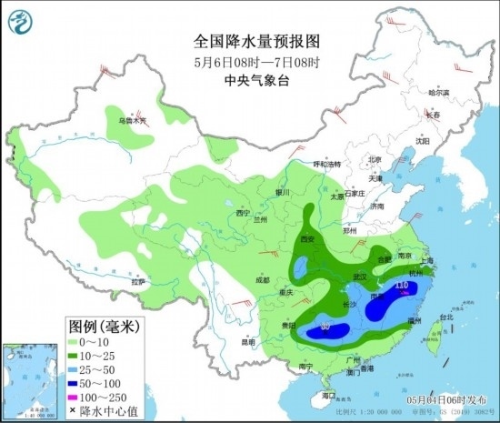 全國降水量預(yù)報圖(5月6日08時-7日08時)