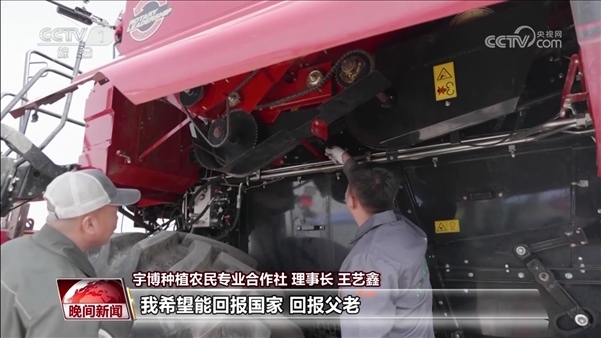 宇博種植農(nóng)民專(zhuān)業(yè)合作社 理事長(zhǎng) 王藝鑫:我就和父母說(shuō)了我的想法,父母也非常了解當(dāng)時(shí)農(nóng)業(yè)的形勢(shì),也都挺同意我的想法的。因?yàn)楝F(xiàn)在有很多新型的種地方式和新型農(nóng)機(jī)具,年輕人可以研究研究這個(gè)新型種地方式,這樣也能使這個(gè)糧食產(chǎn)量得到提高,這不也屬于為家鄉(xiāng)作貢獻(xiàn)嘛。