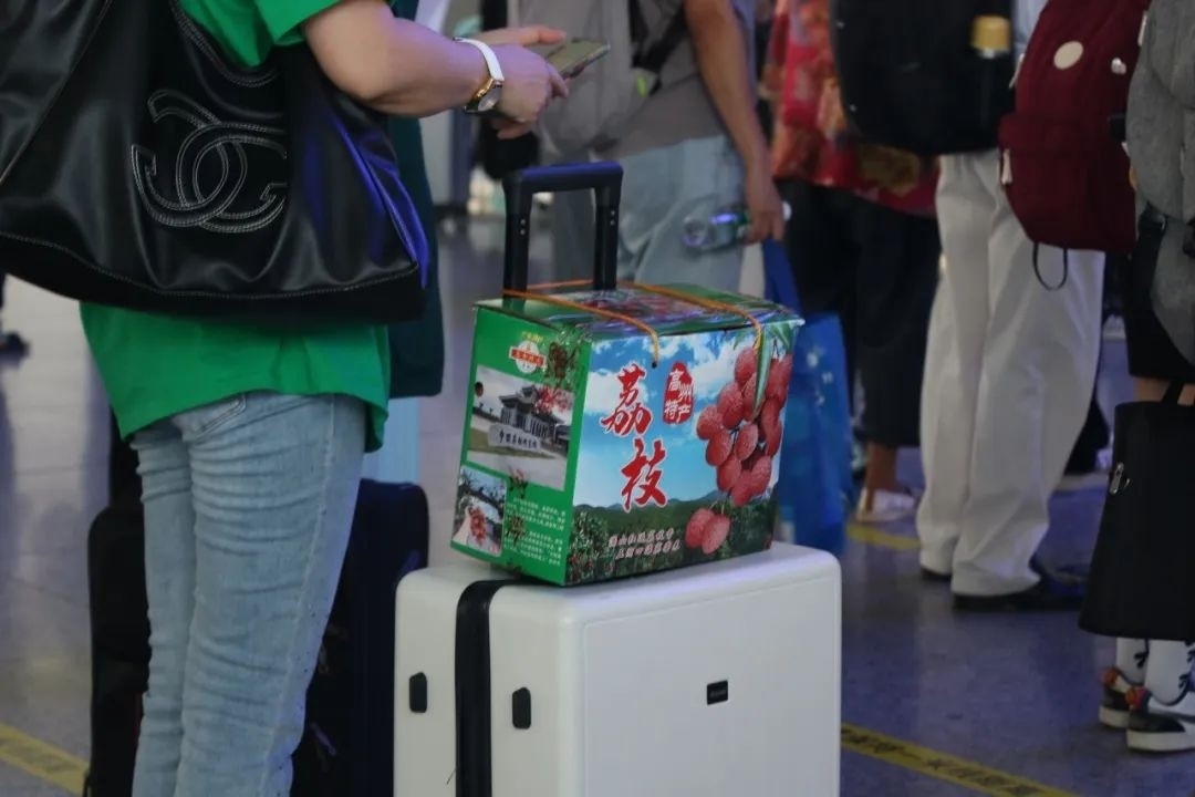 “我們會(huì)提前留足票源、增加運(yùn)力、增設(shè)安檢口,方便旅客快速進(jìn)站。安檢口提前備好透明膠帶,提供給攜帶荔枝的旅客加固包裝使用?!泵菊鹃L(zhǎng)陳桓介紹。