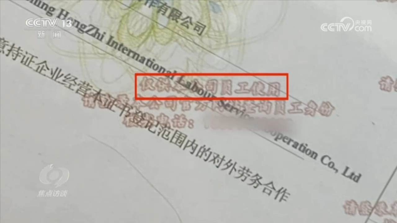 在辦公室擺放的證件是一家名為遼寧恒志國際勞務合作有限公司的對外勞務合作經營資格證。為了防止別人冒用自己的資質,在證件上明確寫著“僅供本公司員工使用”,還印上了公司的核實電話。按照這個號碼,記者聯系了遼寧恒志國際勞務合作有限公司,公司負責人卻表示不認識眾國國際。