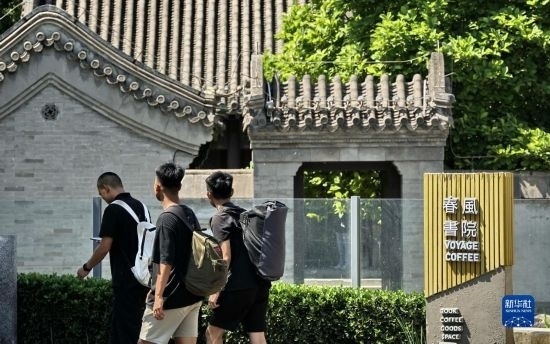 游人路過(guò)玉河畔的春風(fēng)書院(6月16日攝)。