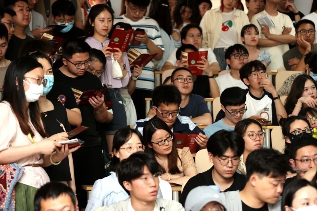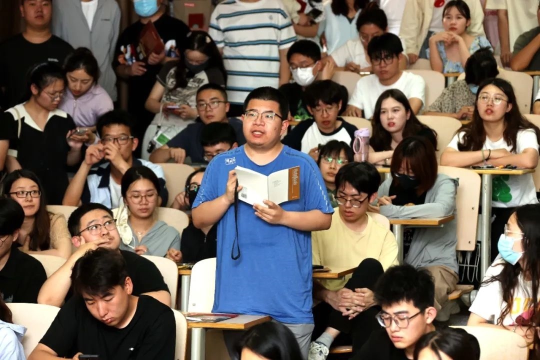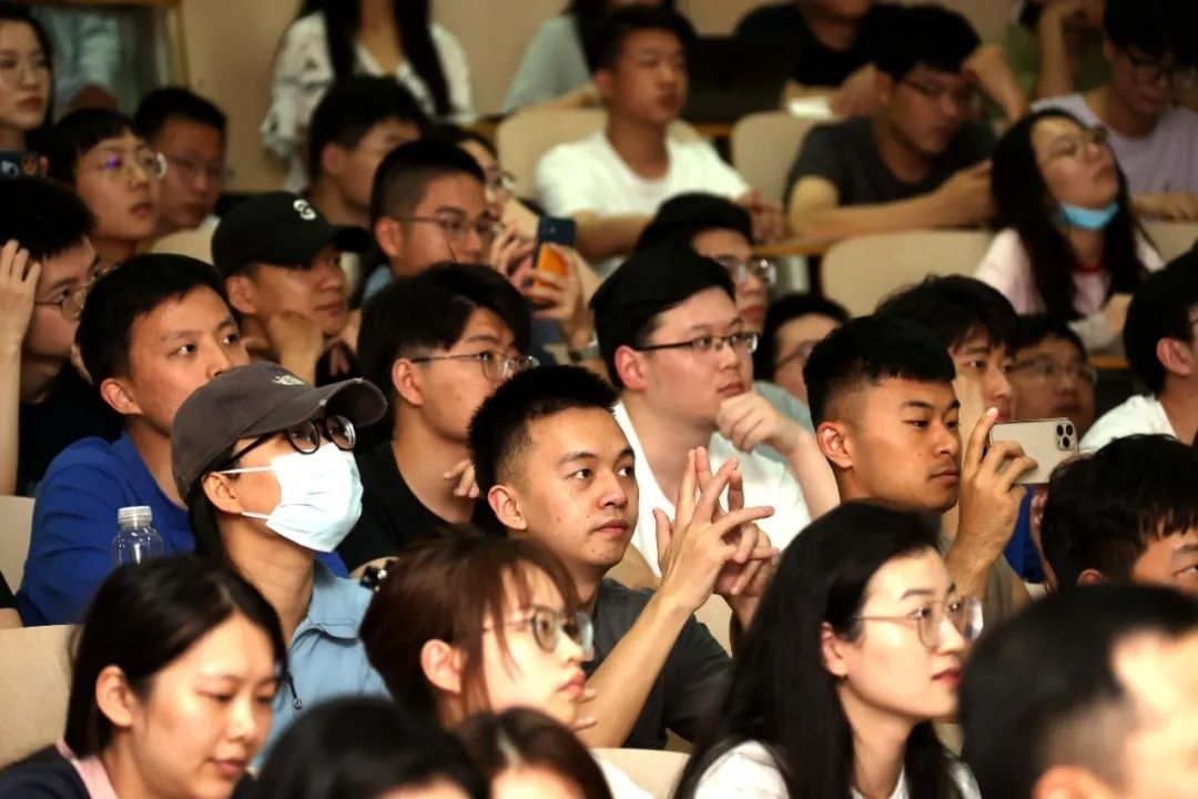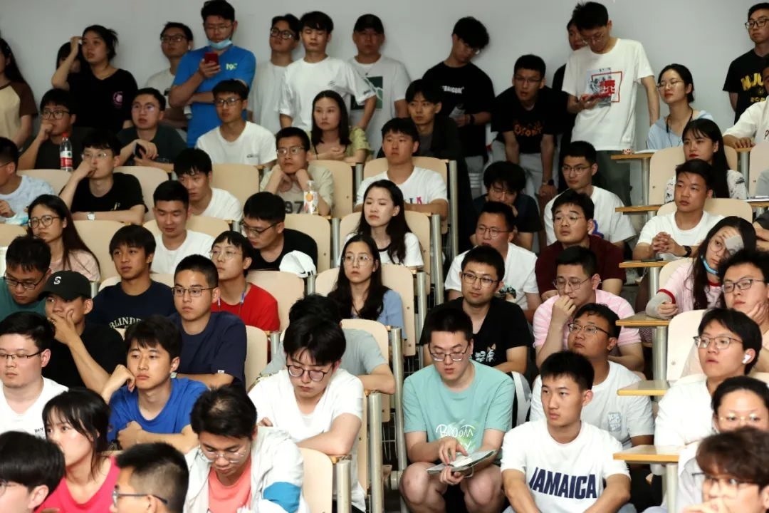 活動中,盡管教室內(nèi)溫度很高,可沒有一名學生中途離開。一名站在過道處聽講的學生差點暈倒,工作人員把他扶到空調(diào)處休息了一會,感覺好點后,他又繼續(xù)站在人群中聽講。