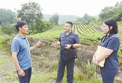6月20日,安徽省明光市人民法院澗溪人民法庭法官頭頂炎炎烈日,穿越泥濘山道,徒步三公里,登上葛藤窩山,到一起環(huán)境污染責(zé)任糾紛案的現(xiàn)場(chǎng)查看樹(shù)木受損情況。