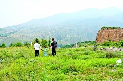 郝中華一家三口漫步在古長城邊。齊波攝