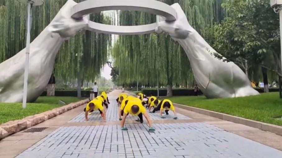 ·男子帶數十人團隊在公園鱷魚爬:可鍛煉全身,越來越多的人加入。