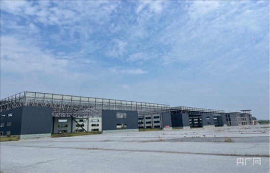 平輿通用機(jī)場(chǎng),機(jī)場(chǎng)建筑外墻仍未粉刷,鋼架結(jié)構(gòu)的建筑內(nèi)長(zhǎng)滿荒草。央廣網(wǎng) 圖
