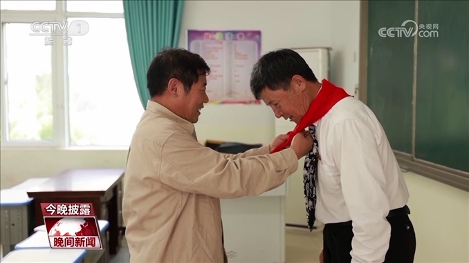 講完課后,劉峰還為張老師系上了紅領(lǐng)巾。