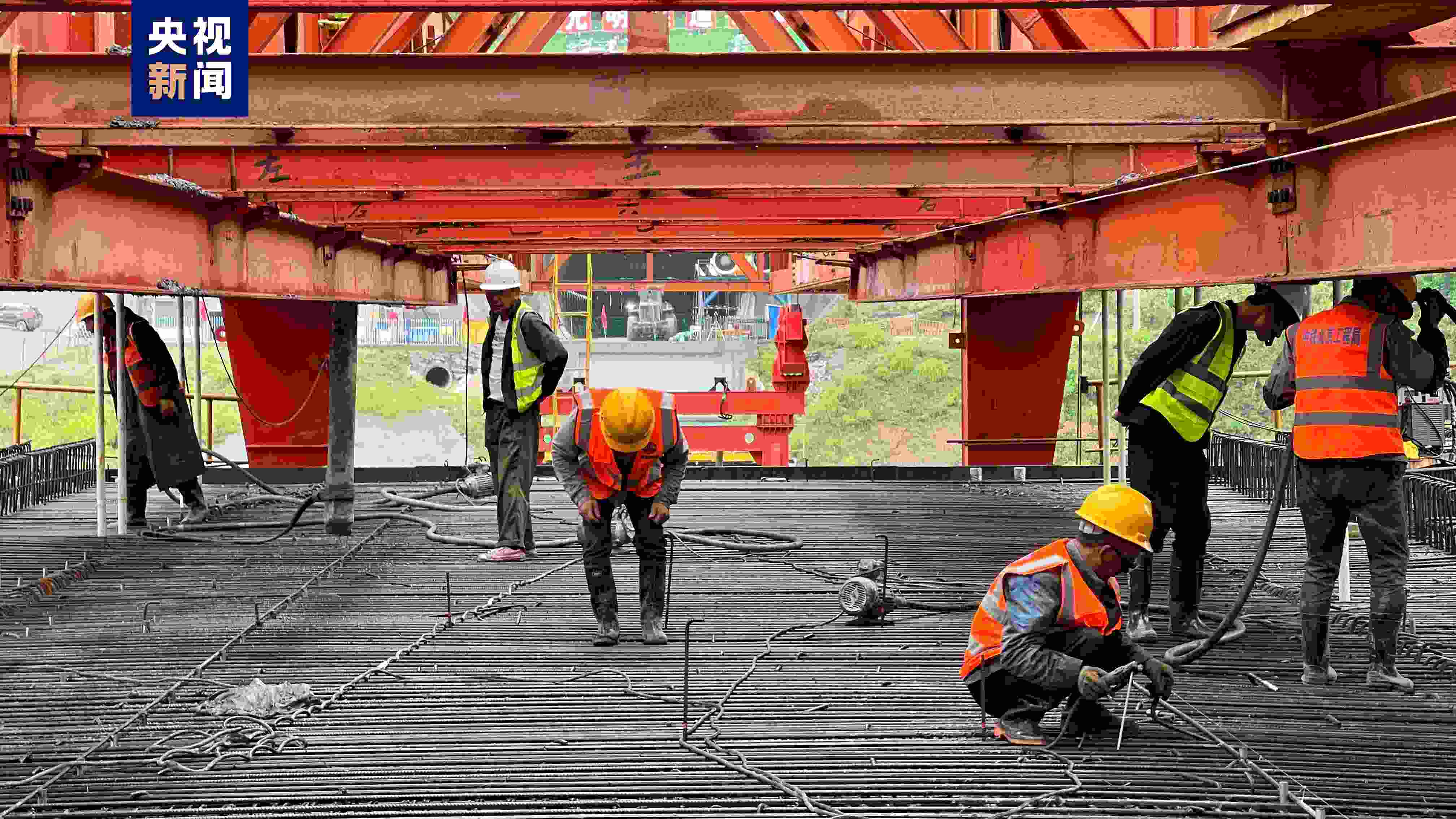 河水壩大橋位于重慶市開州區(qū)巫山鎮(zhèn)河龍村北側(cè),橋址跨越河谷地形起伏較大,植被茂密,水面寬約12米,橋址地層巖性主要為軟塑狀粉質(zhì)黏土,層厚約2.1米,具有承載力低、壓縮性高、厚度分布不均等特點,地質(zhì)條件較為復(fù)雜。本次澆筑成功的是河水壩大橋首孔現(xiàn)澆梁,經(jīng)過施工人員連續(xù)10小時的奮戰(zhàn),孔長32m,高3.03m,重約900t的移動模架現(xiàn)澆梁順利完成混凝土澆筑。據(jù)中鐵北京工程局成達(dá)萬高鐵項目一工區(qū)經(jīng)理烏小平介紹:“河水壩大橋首孔現(xiàn)澆梁采用移動模架現(xiàn)澆法施工,制梁具有機(jī)械化程度高、靈活性強(qiáng)、節(jié)約人力成本、施工周期短、使用輔助設(shè)備少、重復(fù)利用性高等特點,既保證了工程質(zhì)量,又能加快施工進(jìn)度,具有良好的經(jīng)濟(jì)效益?!币苿幽<墁F(xiàn)澆法施工有效解決了控制性工程長大隧道架梁機(jī)無法及時架梁的問題,縮短了整體工期,確保項目按期順利推進(jìn)。