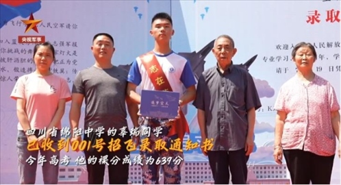 2023年度空軍首批招飛錄取通知書發(fā)放。收到001號錄取通知書的是四川省綿陽中學的辜瑞同學。今年高考,他的裸分成績?yōu)?39分,有望入圍空軍與北京大學、清華大學、北京航空航天大學聯(lián)合培養(yǎng)“雙學籍”飛行學員預選對象。