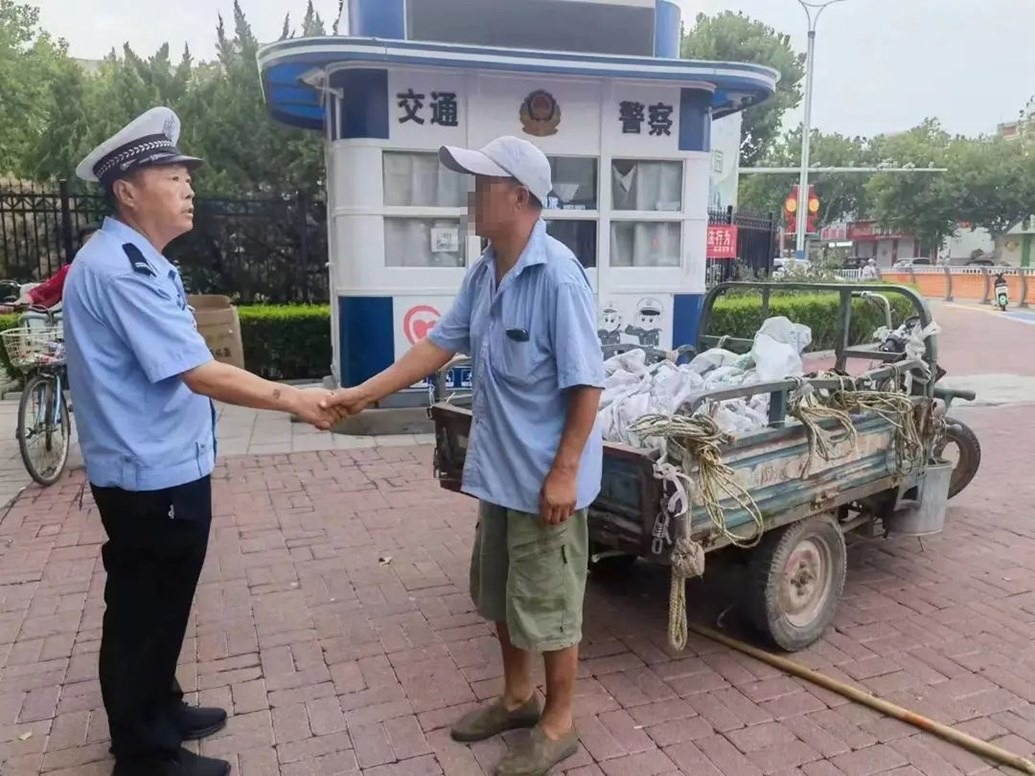 ·山東臨清交警通報“交警被三輪車拖行”:駕駛?cè)擞新犃φ系K,當事交警予以諒解。