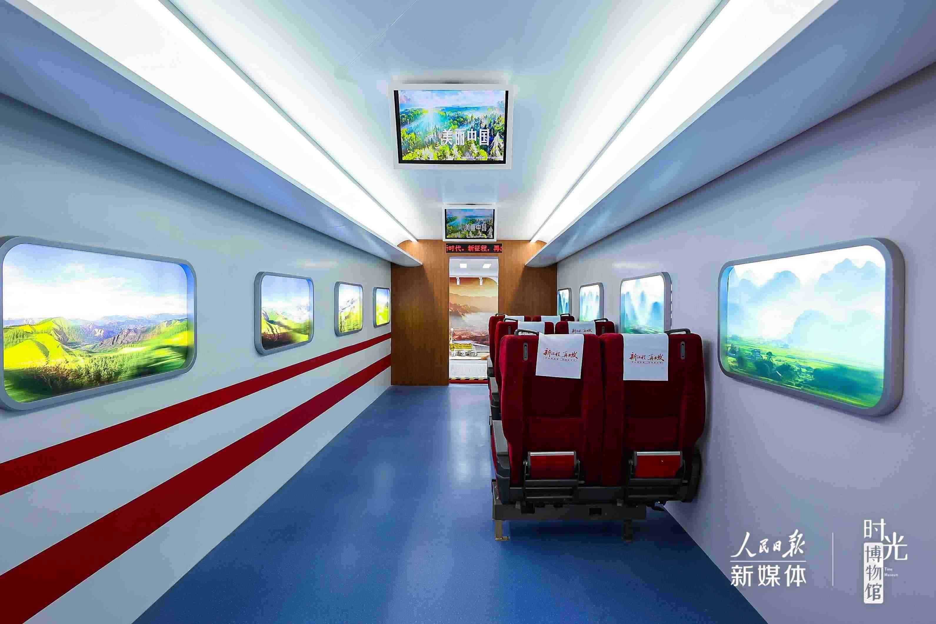 走進(jìn)這座由兩輛雙層雙擴(kuò)容特裝巨型箱體車改裝的“紅房子”里,“復(fù)興號(hào)”高鐵、“天宮”空間站、古今融合的《新千里江山圖》一一映入眼簾??赏垦b的盾構(gòu)機(jī)、可云游的長(zhǎng)城、AR觀影……“實(shí)物+影像+互動(dòng)體驗(yàn)”組成的展區(qū),呈現(xiàn)著新時(shí)代十年的非凡成就。