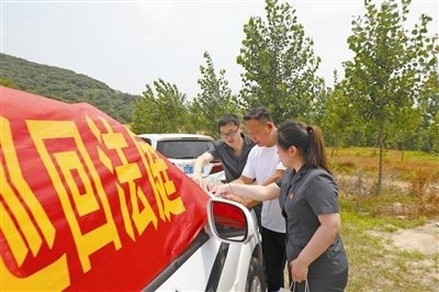 “現(xiàn)在開庭!”隨著審判長的一聲令下,這場以青山為背景、警車為審判臺、黃土地為審判場的“別樣”庭審正式落槌!近日,山東省莒南縣人民法院環(huán)境資源審判庭的法官冒著酷暑來到坊前鎮(zhèn)李家崖村,對被告人李某非法占用農(nóng)用地刑事附帶民事公益訴訟案件進(jìn)行開庭宣判,并現(xiàn)場監(jiān)督被告人對破壞的土地進(jìn)行徹底修復(fù)。