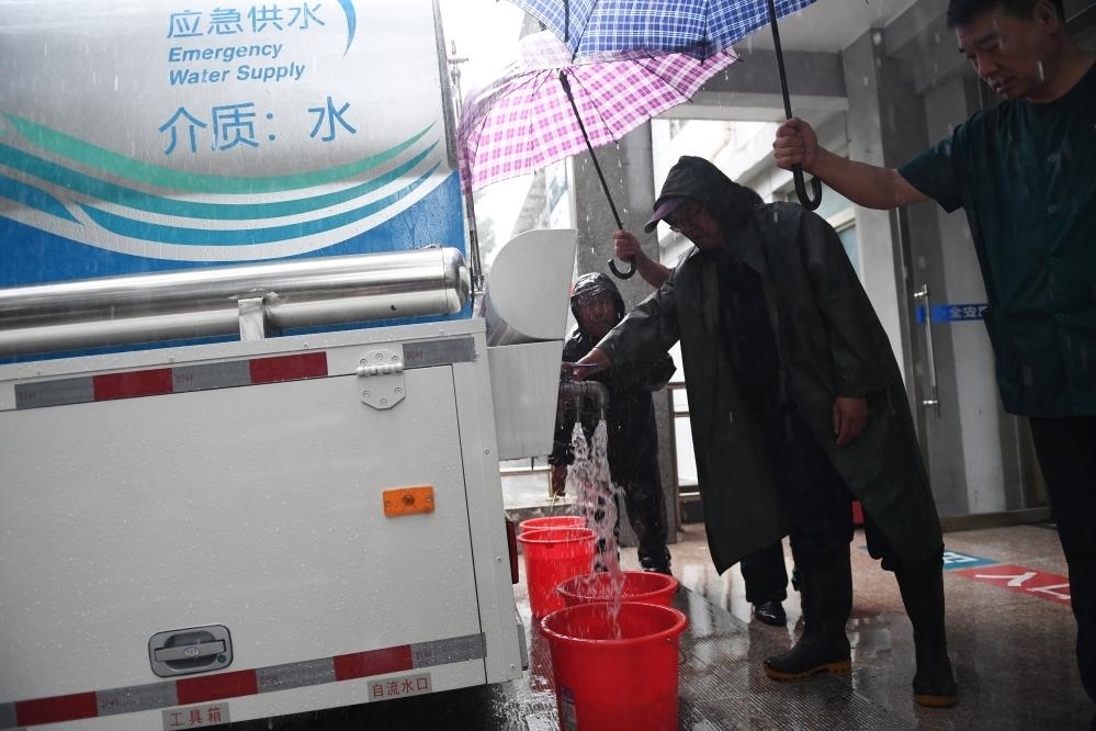 位于門頭溝區(qū)永定鎮(zhèn)的上岸療養(yǎng)院31日中午停水,之后工作人員在雨中迎來(lái)了應(yīng)急供水車,并組織看護(hù)人員集中取水。北京市自來(lái)水集團(tuán)介紹,該集團(tuán)門頭溝城子水廠擋水墻被沖垮,配水機(jī)房進(jìn)水導(dǎo)致全廠停水,影響門頭溝區(qū)門城等地區(qū)約15萬(wàn)戶正常供水。目前有45輛應(yīng)急供水車向停水地區(qū)進(jìn)行應(yīng)急供水,優(yōu)先前往養(yǎng)老院、醫(yī)院等地。