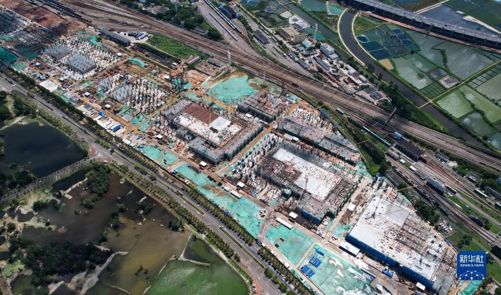 海口新海港和南港“二線口岸”(貨運)集中查驗場所建設(shè)項目(7月21日攝,無人機照片)。