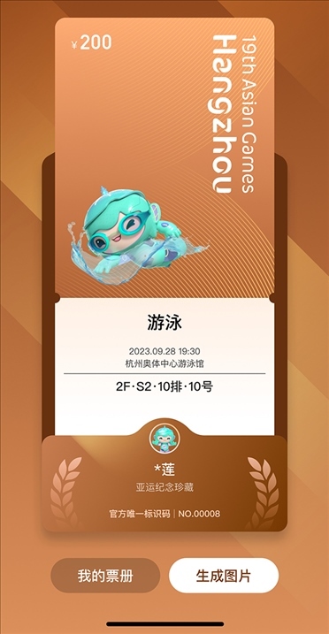 為呼吁全民助力綠色亞運(yùn),杭州亞運(yùn)會(huì)推薦使用電子票。凡購(gòu)買電子票的用戶均可在公眾售票官網(wǎng)H5頁(yè)面、智能亞運(yùn)一站通?票務(wù)通票夾中抽取對(duì)應(yīng)項(xiàng)目的電子紀(jì)念票,生成專屬票冊(cè),方便收藏、分享、傳播。電子紀(jì)念票分金、銀、銅、通用四種類型,抽中比例分別為5%、10%、15%、70%。電子紀(jì)念票和專屬電子票冊(cè)首次運(yùn)用于國(guó)內(nèi)舉辦的綜合性運(yùn)動(dòng)會(huì),是智能辦賽理念的生動(dòng)體現(xiàn)。