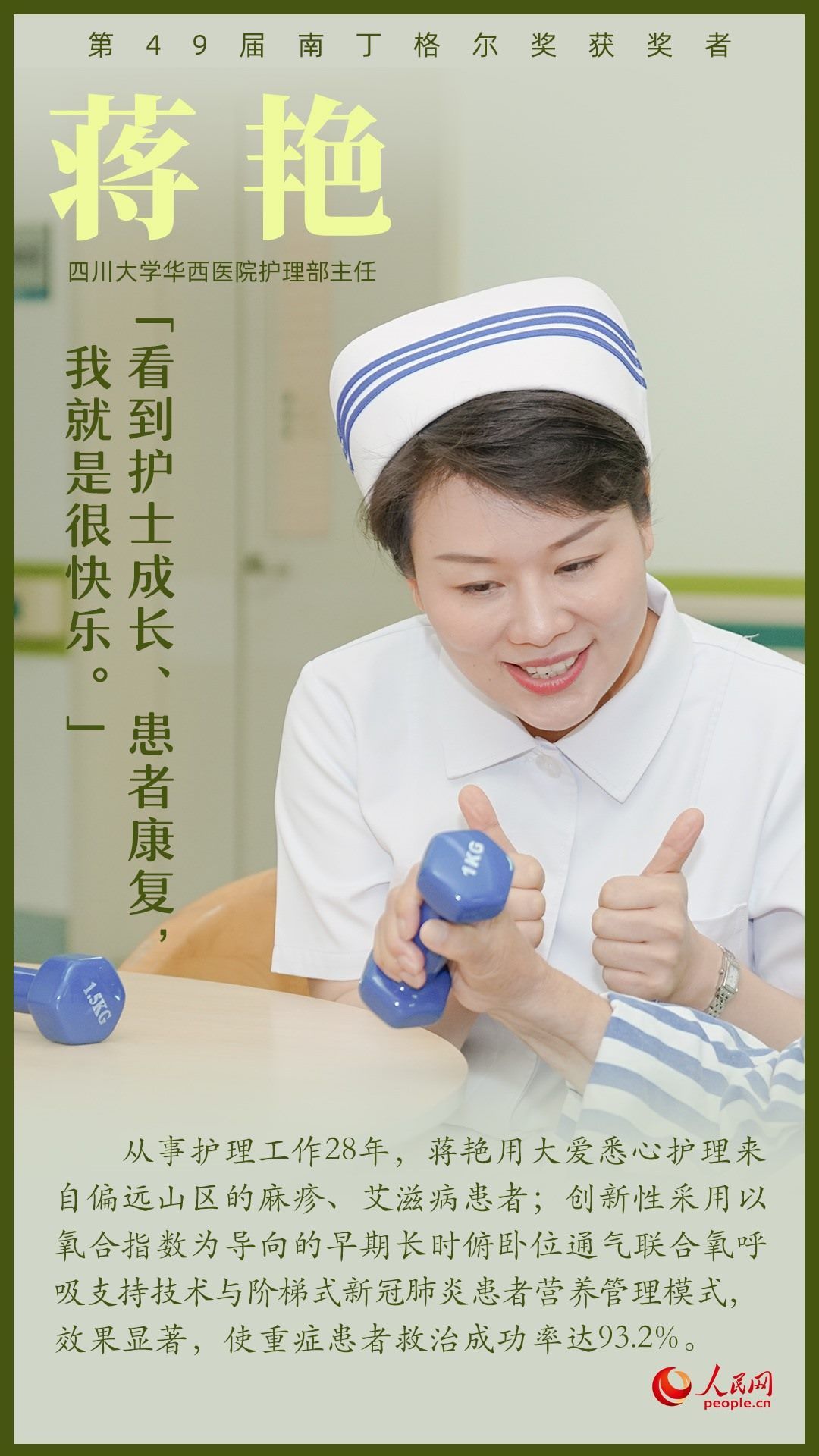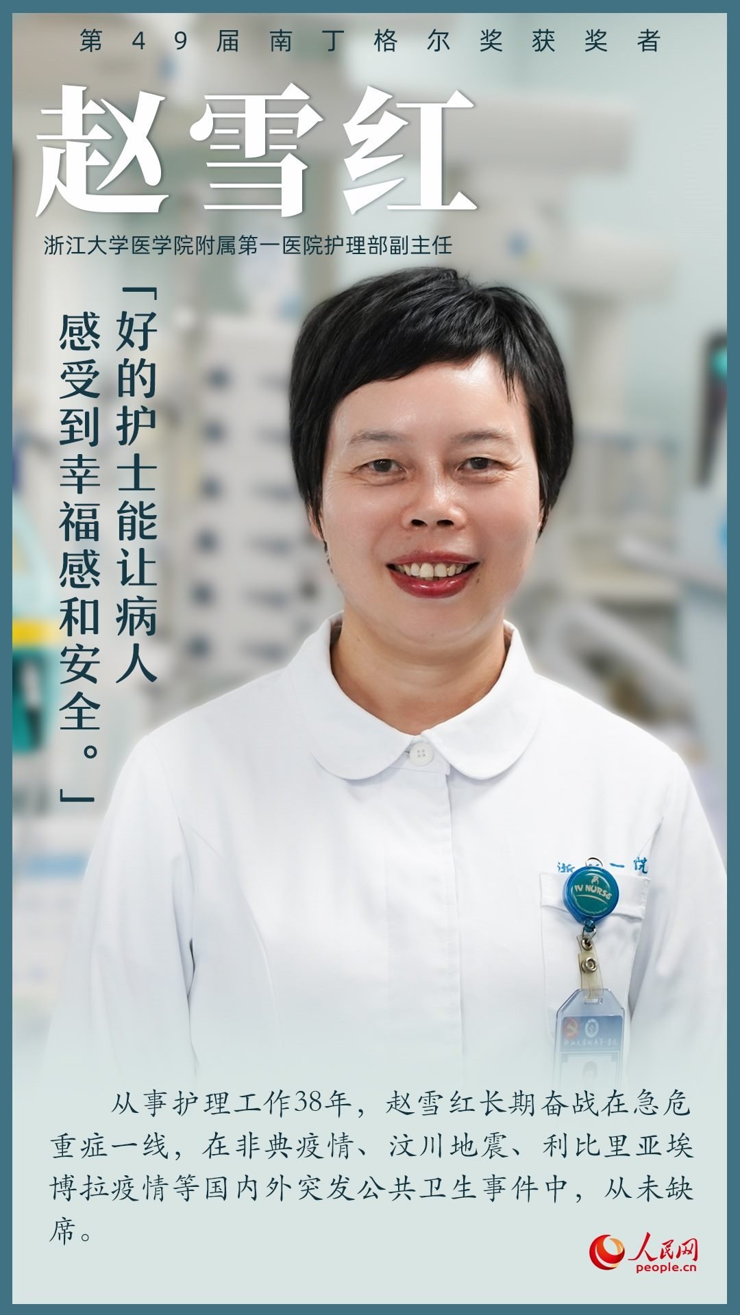 第49屆南丁格爾獎頒獎大會9月5日上午在北京人民大會堂舉行,7名我國護(hù)理工作者獲得南丁格爾獎?wù)?。她們辛勤工作在臨床第一線,全心全意為患者服務(wù),生動詮釋了“人道、博愛、奉獻(xiàn)”的紅十字精神;她們用擔(dān)當(dāng)奏響生命之歌,用奉獻(xiàn)書寫白衣使命,在推進(jìn)健康中國建設(shè)的征程上步履不停。