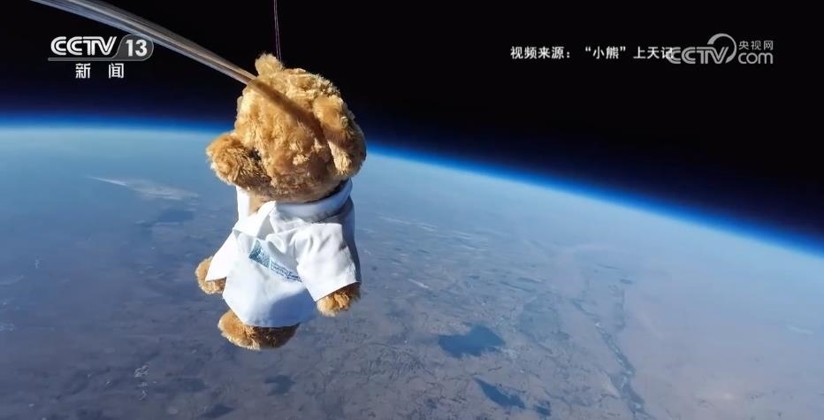 氦氣球托升著一只毛絨小熊,在泛著藍(lán)色光暈的地球上漂浮旋轉(zhuǎn)。本周二,這則小熊萬(wàn)米飛天、與地球合影的視頻,被稱為理工生的優(yōu)雅浪漫。