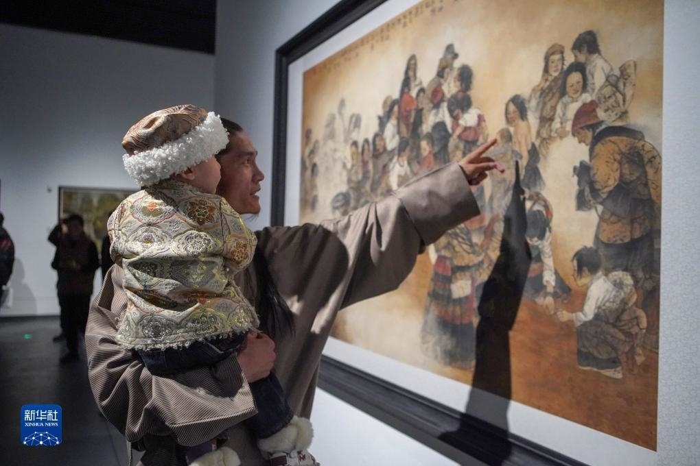 11月15日,觀眾在西藏美術館參觀畫作《草原紀事》?!⌒氯A社記者 邵澤東 攝