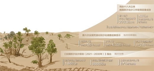 如今,烏蘭布和沙漠林草覆蓋度從上世紀50年代初期的0.04%提高到37.2%,呈現(xiàn)出“整體好轉(zhuǎn)、改善加速”的良好態(tài)勢,正在實現(xiàn)從“沙進人退”向“綠進沙退”的轉(zhuǎn)變。