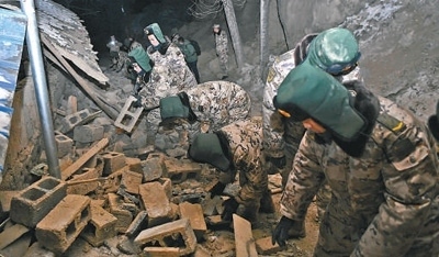 12月19日,武警甘肅總隊臨夏支隊在積石山縣劉集鄉(xiāng)陽屲村展開救援。侯崇慧攝(新華社發(fā))