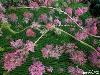 2023年12月18日,云南大理,無量山櫻花谷的冬櫻花迎來最佳觀賞期。如云似霞的櫻花與碧綠如染的茶園交織在一起,構成了一道亮麗的風景。