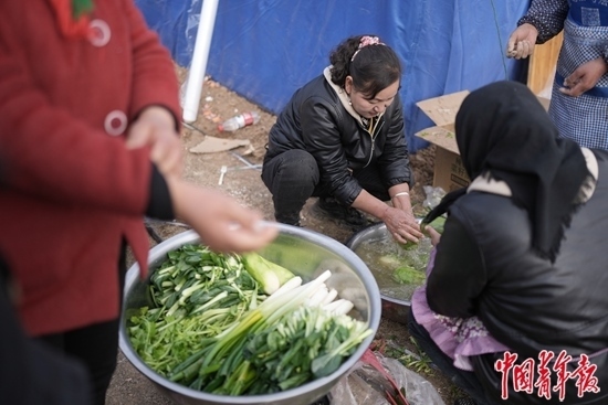12月20日下午,青海省海東市民和縣中川鄉(xiāng)金田村,在救助點(diǎn)準(zhǔn)備飯菜的婦女。中青報(bào)·中青網(wǎng)記者 李雋輝/攝