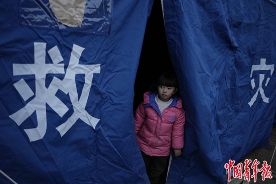 韓福成的兩個(gè)小女兒年紀(jì)小,對地震沒什么感覺,“還想著睡覺”;獨(dú)自在縣中寄宿的大女兒和老師在一起,“不冷,也不會很害怕”。