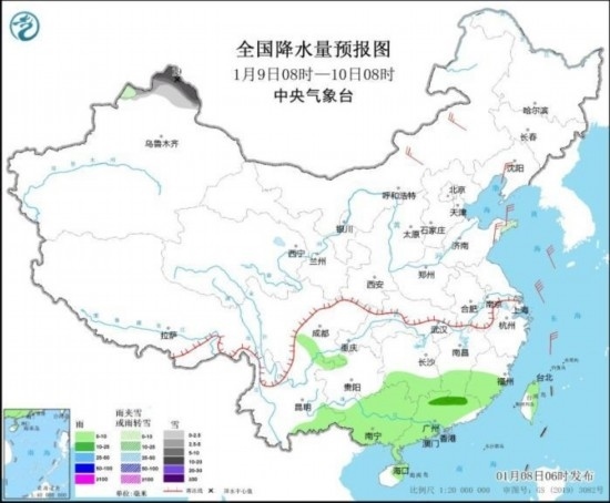 全國降水量預(yù)報圖(1月9日08時-10日08時) 來源:中央氣象臺網(wǎng)站